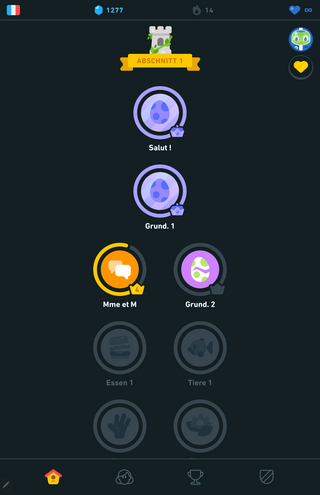 Duolingo(独→仏)はスキル2つが Königslevel に到達して、3つめのスキルのレベル上げ途中。 1日20分弱の学習時間で、 私だと1.4スキル/週ぐらいの進度です。