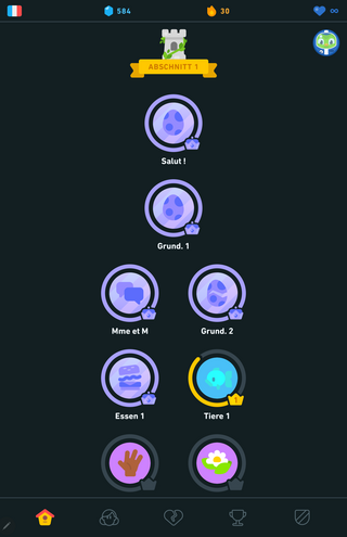 Duoling(独→仏)はスキル5つがレジェントレベルに到達、 6つ目を始めたところです。
